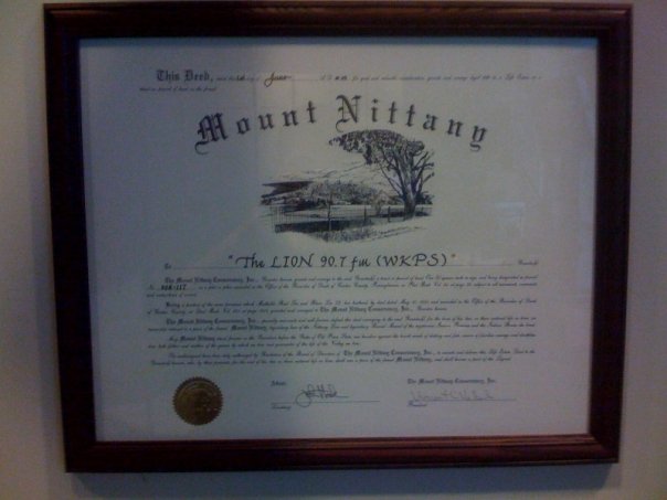 Photos of the Mount Nittany Life Estate Deed can be seen below, which now hangs in the station’s 2015-era HUB-Robeson Center facility.