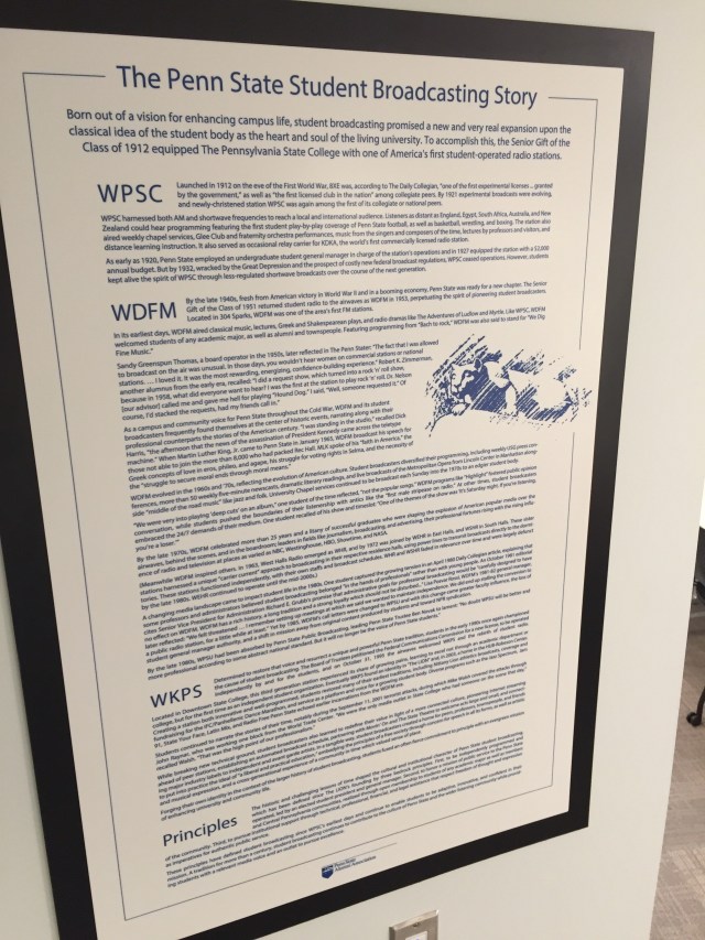 The Penn State Student Broadcasting Story tells the 100+ year history of one of Penn State’s most distinctive traditions. The Penn State Student Broadcasting Story plaque was gifted to The LION 90.7fm from the Penn State Media Alumni Interest Group and can be seen in their HUB-Robeson Center facilities.